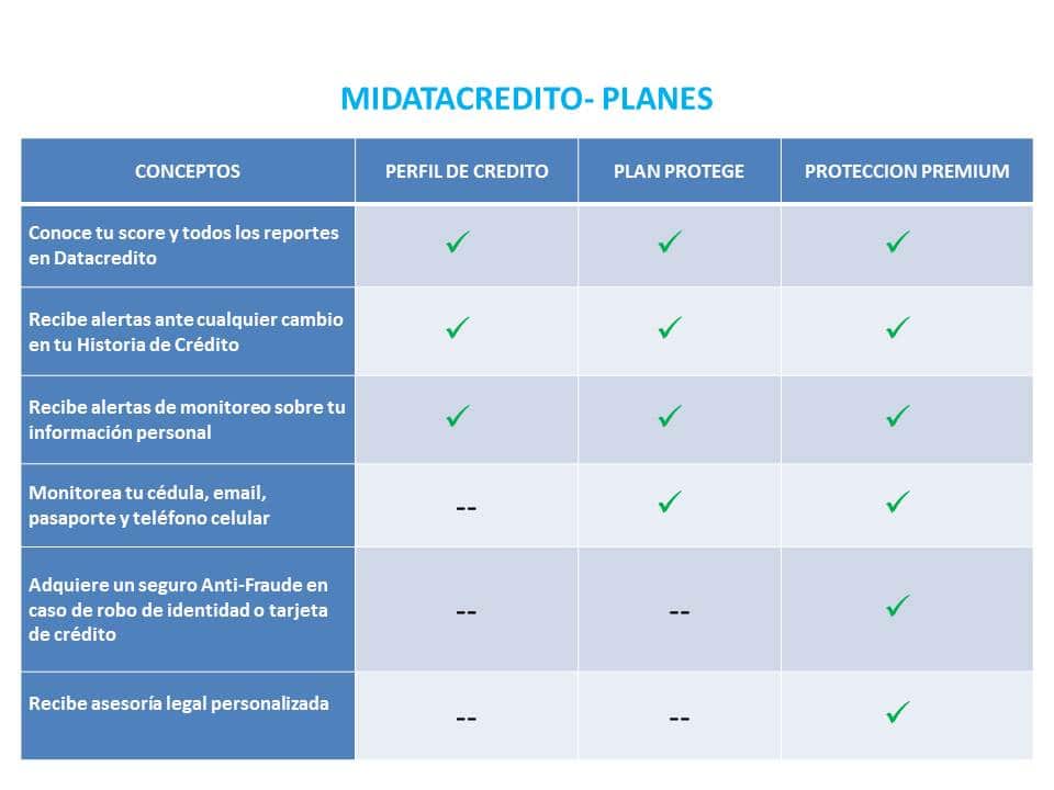 Los planes que ofrece midatacredito son: